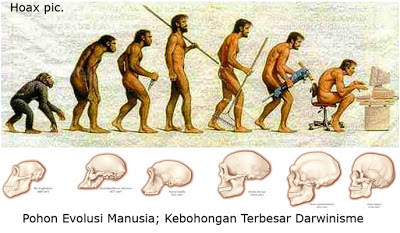 Tapi, meskipun kaum Darwinis tak pernah berhasil menyadurkan bukti ilmiah untuk membuktikan teori mereka, mereka sangat berhasil dalam satu hal; yaitu Propaganda! Mereka sangat ahli berbohong dengan menciptakan fosil palsu dengan mengkombinasikan antara tengkorak Simpanse dengan rahang manusia. Mereka adalah orang-orang yang ahli berkonspirasi dengan menciptakan “Pohon Evolusi Manusia” yang menggambarkan penjelmaan manusia dari kera. Dan mereka tidak hanya licik berdusta, namun juga mampu menjejali pikiran kaum cendikia dengan ideologi ini melalui institusi pendidikan dan kurikulum sekolahan.